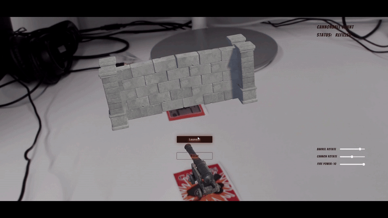 Spawn two models at once using two image targets. Players adjust the cannon's angle and firing power to launch projectiles and demolish the castle.